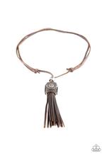 Infused with antiqued silver beads, a tasseled leather piece swings from the bottom of a leather strand for a seasonal flair. Features an adjustable sliding knot closure.